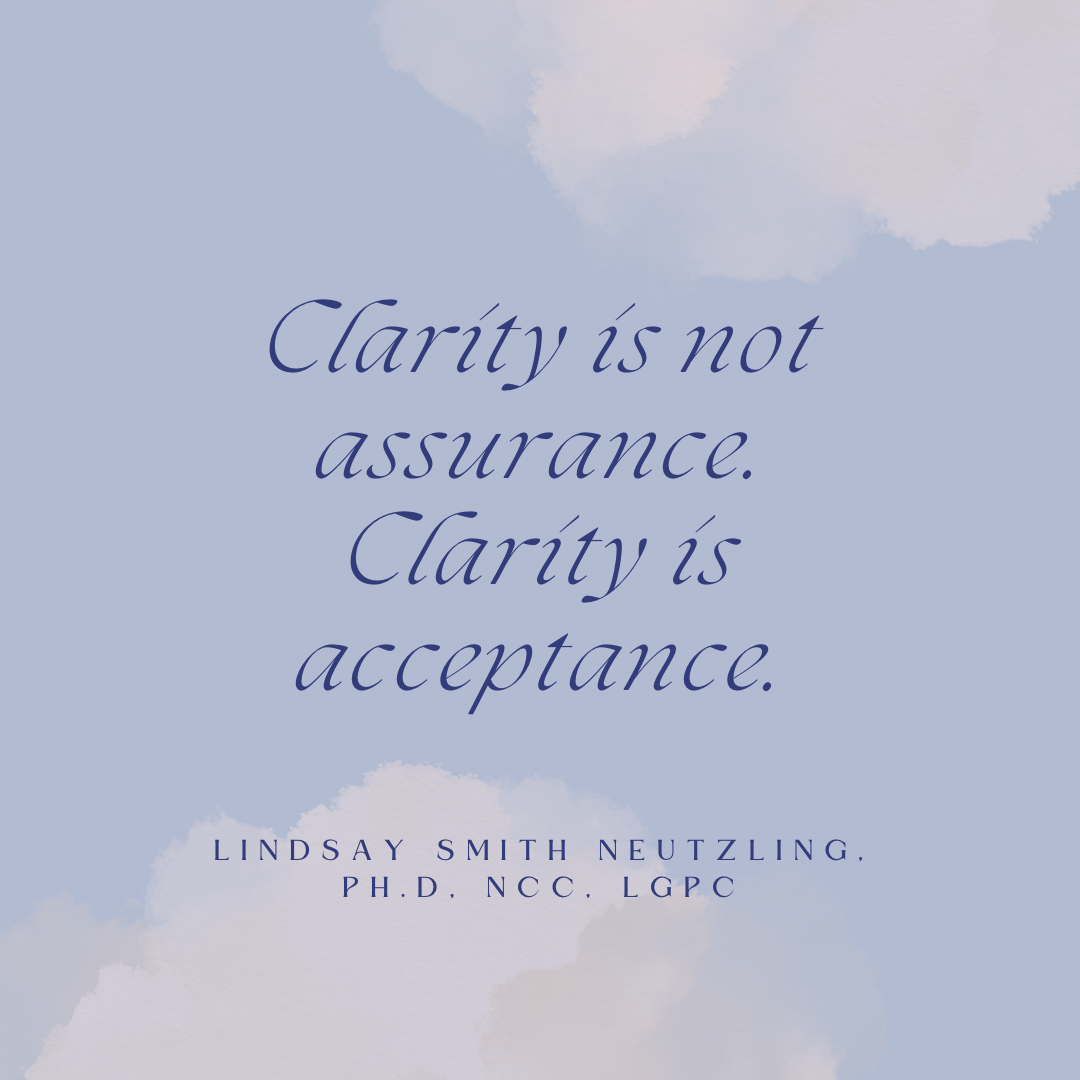 All along I have sought clarity to fuel my certainty. I thought that clarity would provide assurance as if my choices could ever be right or wrong.
